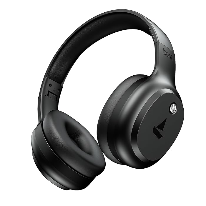 The boAt Rockerz Black Sabre over ear headphones are built for everyday listening and travel. They pair via Bluetooth 5.4 with devices and stay connected up to about 10 metres. A simple press on the earcup Push Button handles play, pause and calls, and you can also use Voice commands when you want to keep your hands free. The ENx mic helps keep conversations clear in busy spaces like trains or cafes. You notice a subtle quieting of background noise when ENx is active, and the cups rest comfortably with Faux Leather and Foam padding around your ears.Capacity